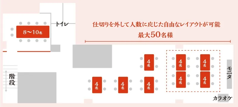 仕切りを外し、人数に応じた自由なレイアウトが可能です。